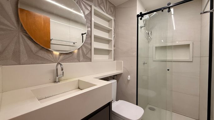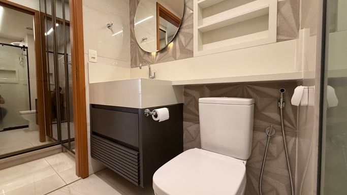 Inclui banheiros, lavabos, suítes e demi-suítes